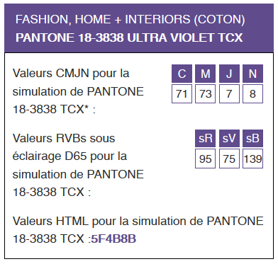 Pantone Ultra Violet 13-3838 TCX Fashion Home and Interior