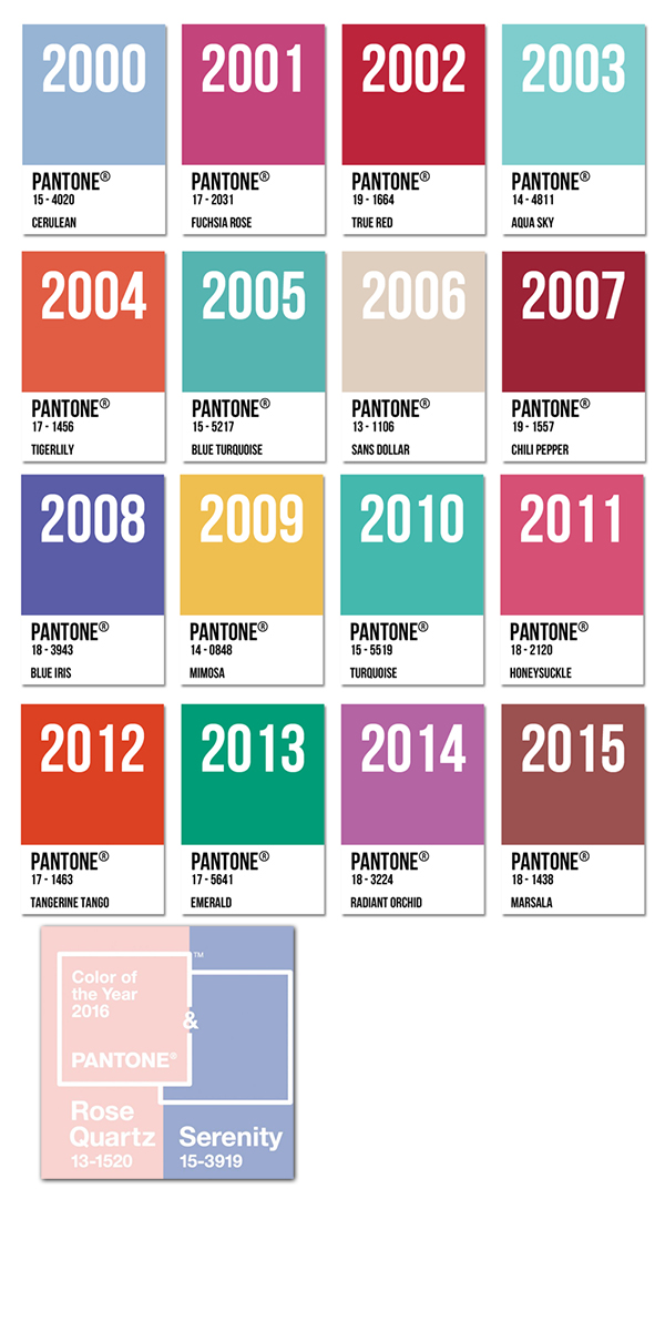 Couleur de l’année Pantone 2000-2016